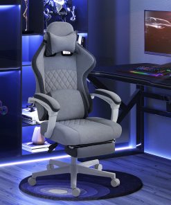 Computer Gaming Chair, Racing Desk Chair with Lumbar Support and Footrest, PU Leather Gamer Chair with Headrest and Swivel Wheels for Home, Grey