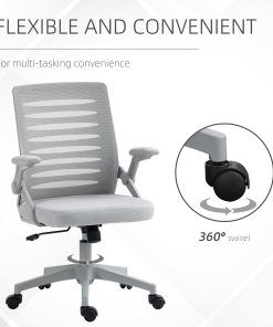 Say bye to uncomfortable long hours at the desk. Say hello to this mesh office chair from . As well as standard ergonomic features – swivel seat, armrests, adjustable height – also coming with a large curved back, the computer chair supports your spine. Mesh covering is breathable. Seat padding is comfortable. Finished with five wheels on the base, so you can move around easily.