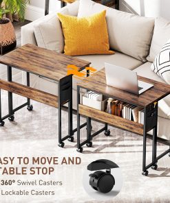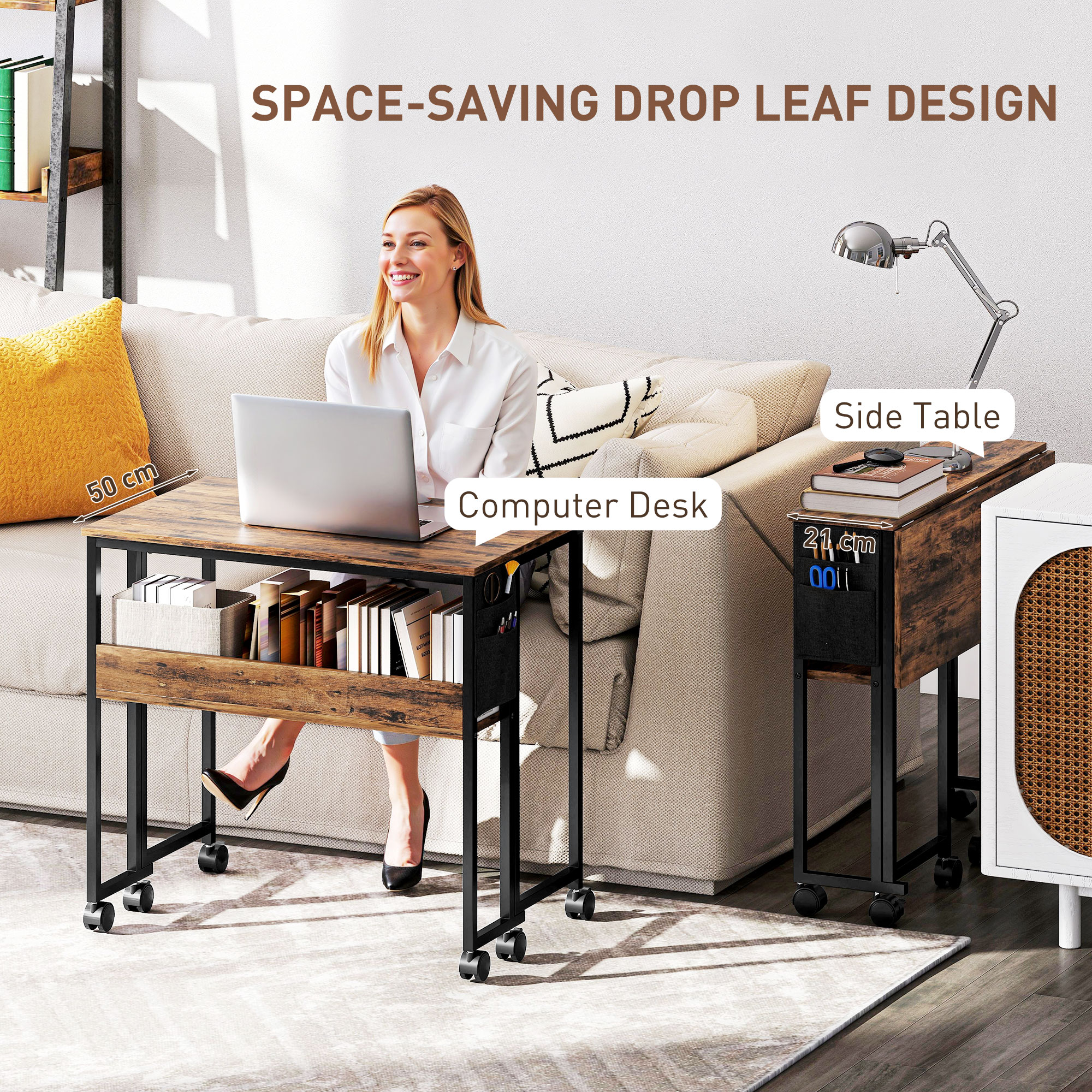 Maximise work space, even in small spaces with this drop leaf computer table. When folded, it is 21 cm and extends to 50 cm – plenty of room for you to work. Features a lower shelf and side bag for close-by holding space for all the essentials. Plus, you can wheel this study desk anywhere with ease, thanks to six 360° swivel casters – complete with four brakes.