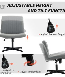 Finding comfort and efficiency during a hectic workday can be tough. The home office chair features a spacious seat for sitting cross-legged, creating a calm workspace. Its breathable linen-feel fabric keeps you cool, while the 360° swivel on this comfortable desk chair makes moving around effortless. Turn your home office into a haven of comfort and productivity.