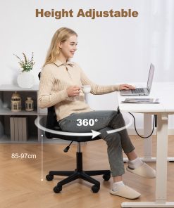 Keep comfortable while working all day with this mesh office chair. A padded sponge seat keeps you comfortable while seated; the mesh back is breathable. The slightly curved back offers support as you lean back. A metal base for weighted balance, with five wheels to move around easily. No arms mean this swivel chair fits underneath your desk at any height. A compact design is great for small places.