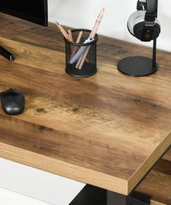 Make room for everything related with this industrial study table from . Features wide top, you will have all the room you need to hold monitor, laptop, keyboard, books, and so forth. The office desk is designed with a middle shelf for storing office supplies and daily items. K-shaped steel legs, quality MDF board, and adjustable non-marking foot pads provide solid construction, and allow secure standing on uneven floor.