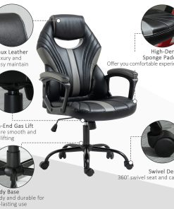 Game in style with this PU leather office chair from . Generous in comfort and support, the desk chair features a wide seat, adjustable height, a high back and high armrests. Thick padding all over provides continual comfort, with PU leather upholstery which is easy to clean and looks great. The coloured panels and perforated panels add extra style. The swivel chair is finished with five wheels on the base allows easy movement. A fantastic balance of style and functionality.