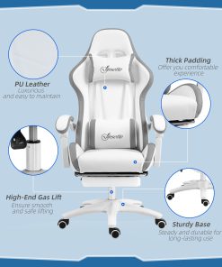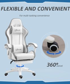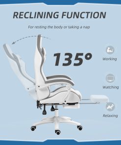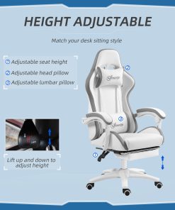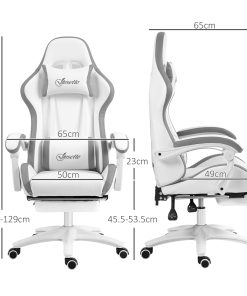 Keep comfortable and focused in the game: do it with this gaming chair. Faux leather upholstery is sleek, with a coloured border all over for a touch of impact. Padded all over, with head and lumbar pillow included for comfort. The back reclines to a maximum 135°, with a pull-out footrest to elevate the lower body. Adjust the height between 45.5cm and 53.5cm, to game at a position best for you.