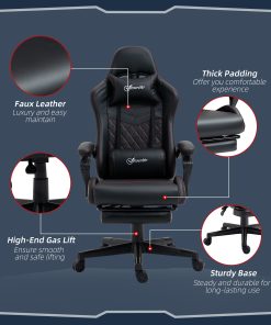 Bold and impressive, this gaming computer chair is a striking home addition. Sleek faux leather is stylish, with contrast-colour stitching for that extra impact. This gaming chair is ideal for beyond your games room: the office, study – even bedroom. Height is adjustable between 124cm and 134cm, finished with five wheels on the base to move easily.