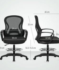 A chair should remain comfortable even during extended use. The tall office chair with footrest offers thick padding and breathable mesh fabric to deliver lasting comfort. The seat and footrest adjust to your sitting position for better support. Smooth swivel wheels make moving the chair effortless. Enjoy maximum comfort with the draughtsman chair.