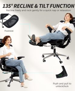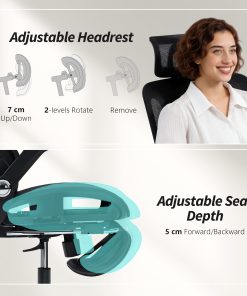 Discover the comfort of the Ergonomic Office Chair. Adjust everything from the headrest to the armrests and experience tailored ergonomic relief. The desk chair’s separated back and lumbar design cradles your body’s curves, enhancing posture. Plus, the breathable mesh keeps you cool, ensuring comfort and stability all day. Great for home or office use!