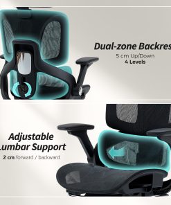 - Support spine with dual-zone backrest and lumbar support to relieve pressure