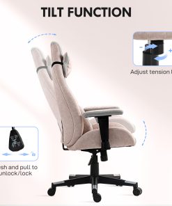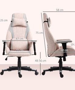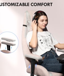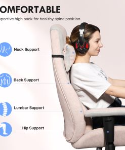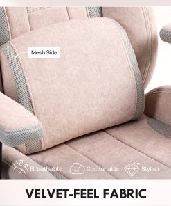 Dive into comfort with the Computer Gaming Chair, featuring a curved back and seat with a lumbar support pillow and headrest that cradle you from head to thigh. Wrapped in a breathable, pink velvet-feel fabric with mesh sides, this pink computer chair combines style with comfort, suitable for any gaming setup or office.