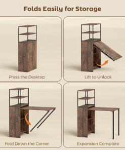 Folding Shelf and Work Table – Brown/Black