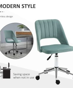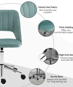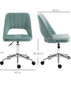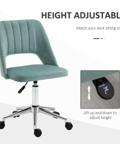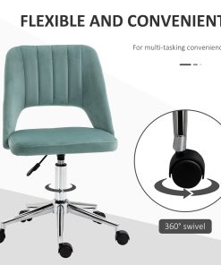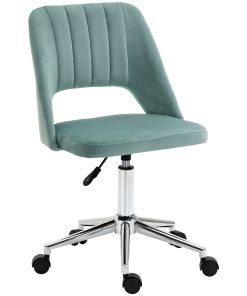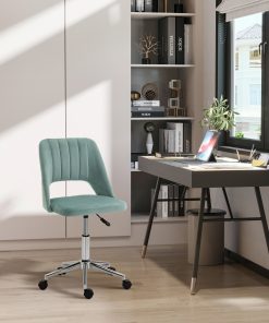 Sometimes we need to bring sophistication into the workday. And now it’s easy – simply use this vanity chair from . Crafted into an armless design for a simplistic look, with plenty of sitting room, the comfy chair is wrapped in velvet-feel upholstery – a beautiful look and feel. Both the back and seat are filled with sponge for comfort, with the backrest providing support. The swivel seat moves with your body motions as you work, finished with five wheels on the base.