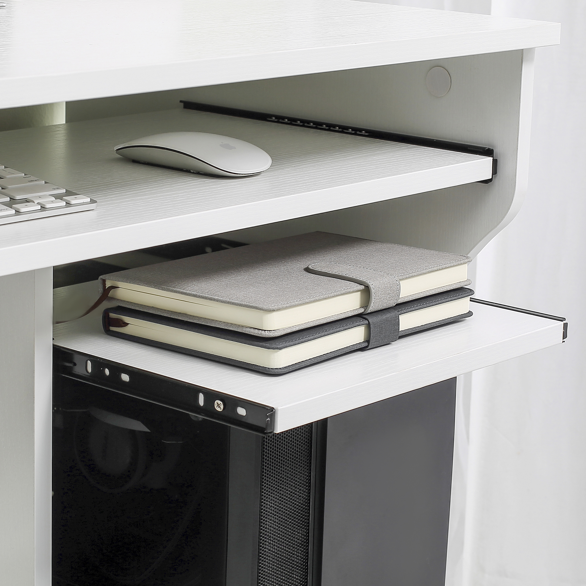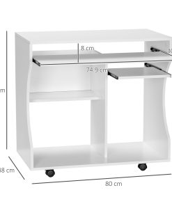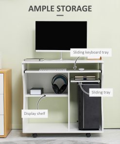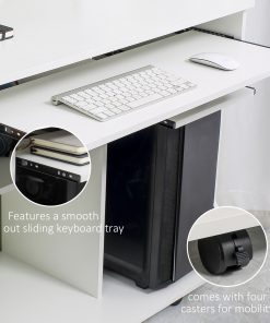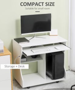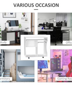 Multi-Storage Compact Work Desk, with Wheels – White