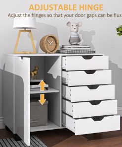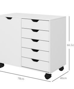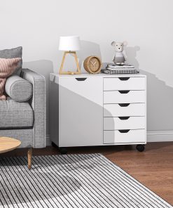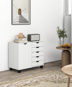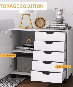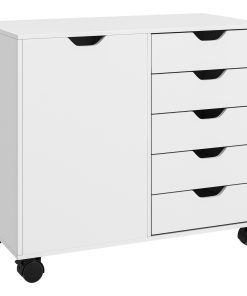 Mix up office storage with this cabinet. Mixing five small drawers with a side cupboard, it provides plenty of room for office papers, files, boxes, stationary and more. The cut-out handles on all doors make them easy to open and close. Inside the cupboard there is an adjustable shelf – set it to a position most convenient for you. Cabinet is complete with four wheels and two brake so it moves around easily.
