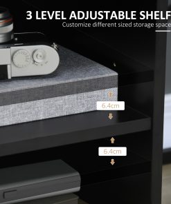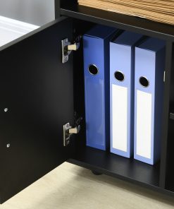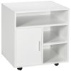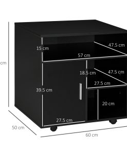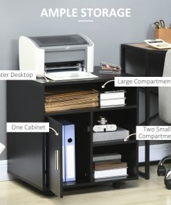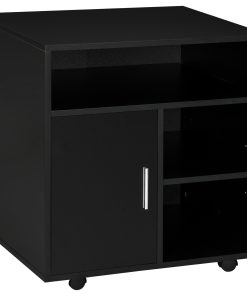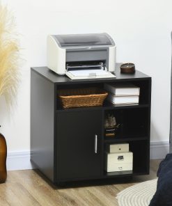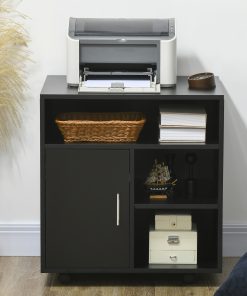 Optimise your office printing area with this cabinet stand from . It is made with a large tabletop to place your printer, an open compartment for easy access to essentials, two open shelves and a bottom cupboard with two shelves – keeping everything you need hidden away and organised. The inner shelf is adjustable if you need different heights. Four wheels for easy movement, with two being lockable to keep the unit stationery. A must for keeping the shared essentials in an obvious place.