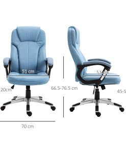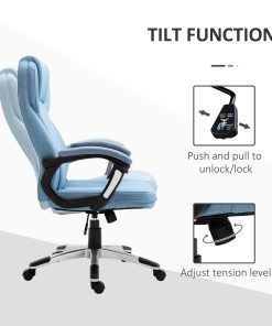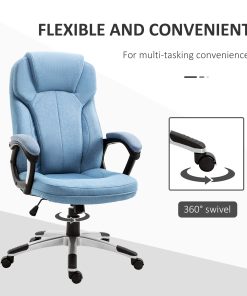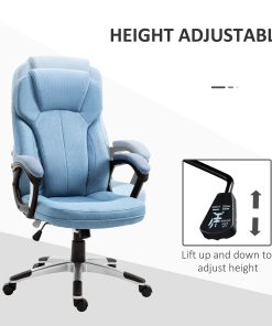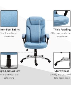 Office Chair, Linen Fabric Desk Chair, Height Adjustable Computer Chair with Padded Armrests, Swivel Wheels and Tilt Function, Blue