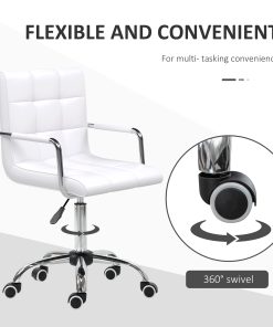 Let the effortless combination of style and comfort lead the way in your home office – choose this swivel chair from . Padded seat and back, with fixed armrests and a high back offer comfort and support. The height is adjustable via the under-seat lever. A heavy-duty base for support is fitted with five wheels for easy movement. Work wherever, whenever.