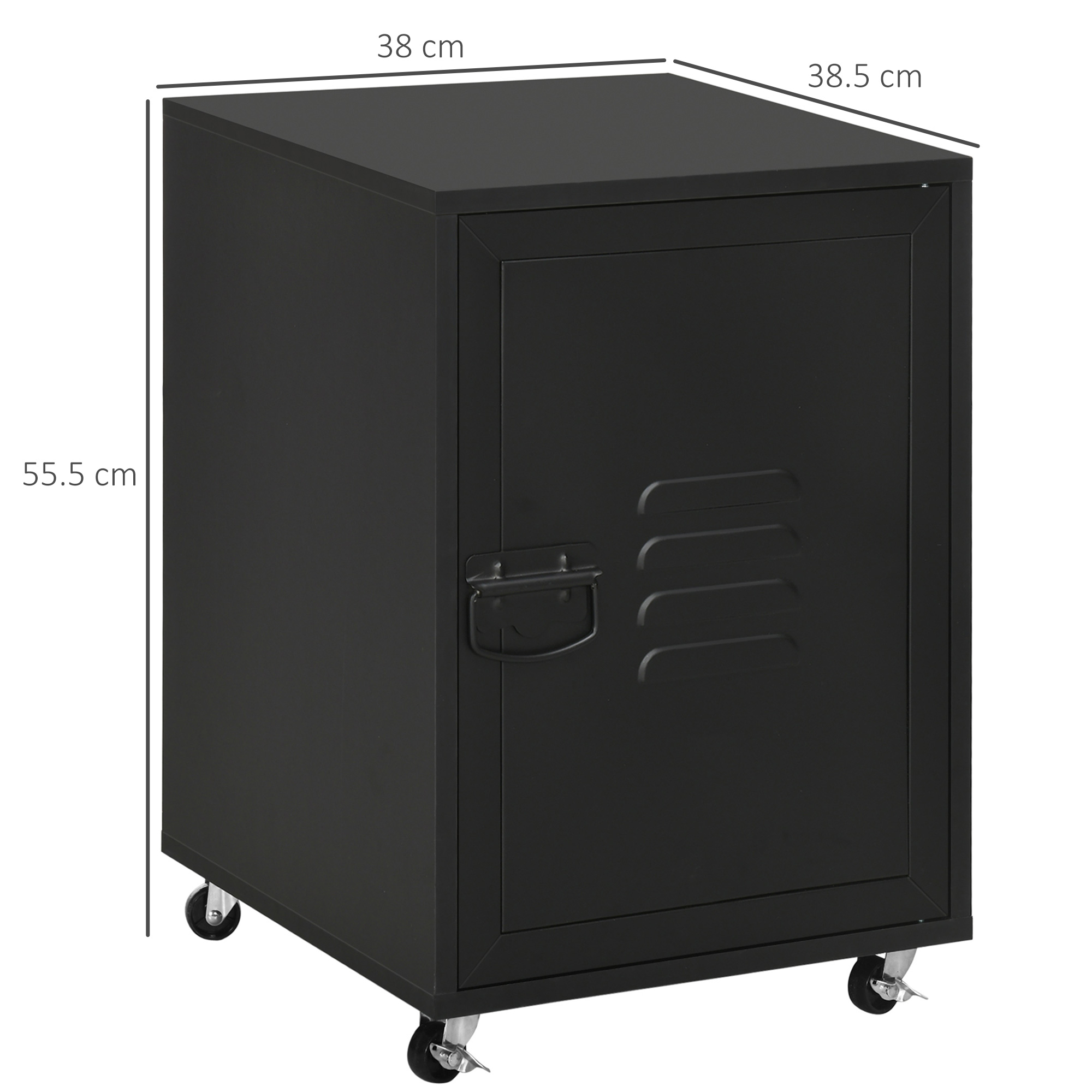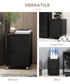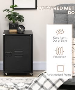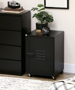 Pure industrial edge for your home or office – this cabinet is cool and quirky. It’s a great piece to use as a nightstand, office cabinet or side table, for those looking to do it different this season and beyond. The structure, made from particle board is durable; fitted with a metal door to keep inside guarded. Front air vents for freshness inside. Handle on the front to open the door easily. Completed with four wheels to move around easily.