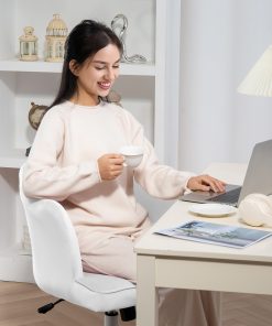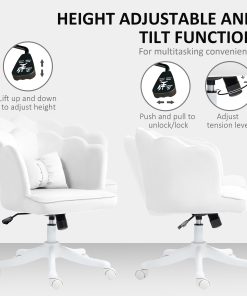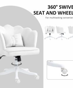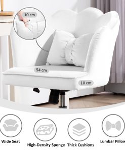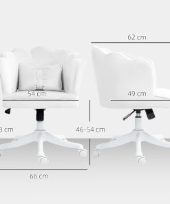 An elegant touch for the work day with this comfortable desk chair. The petal shaped back, paired with the velvet-feel upholstery creates a beautiful look. The inner padding and included pillow makes this a comfortable piece. Adjust the height between 46-54 cm – sit at a position you want. Complete with five wheels to move around easily.