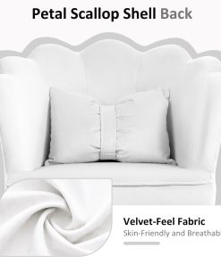 - Petal scallop shell back and velvet-feel upholstery for an elegant look